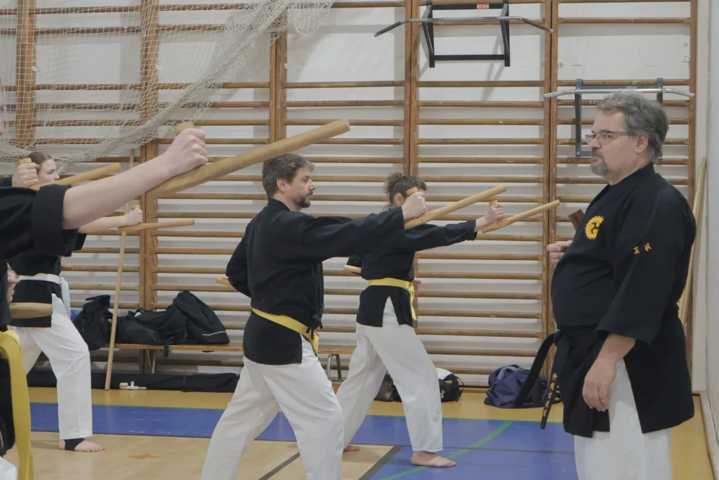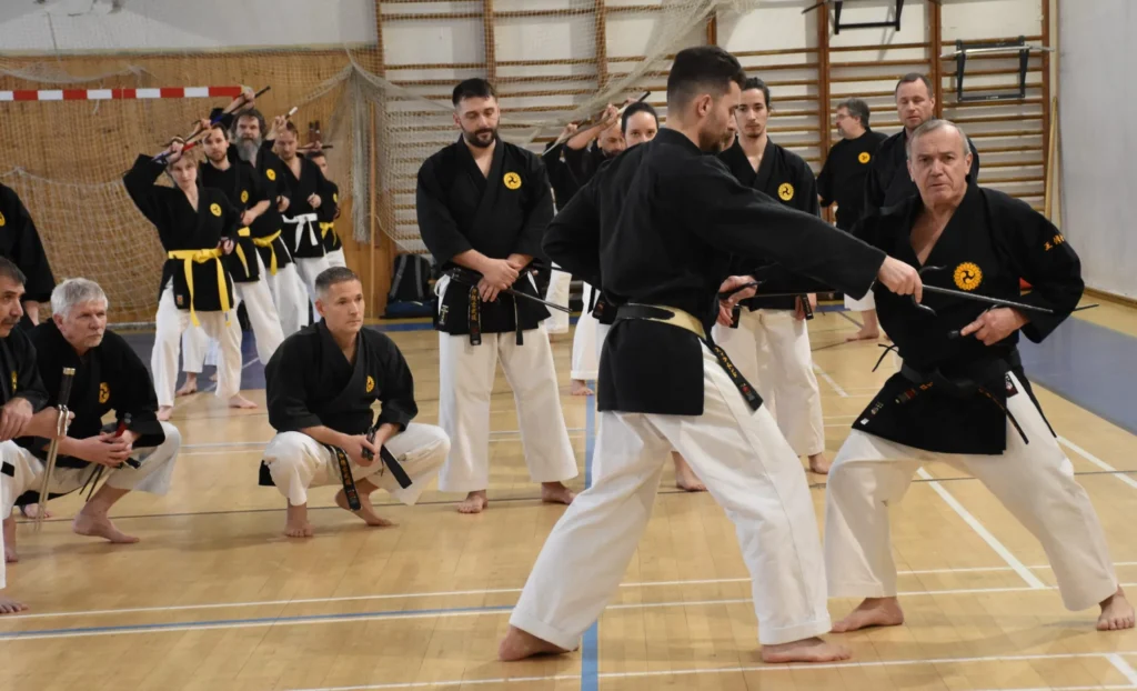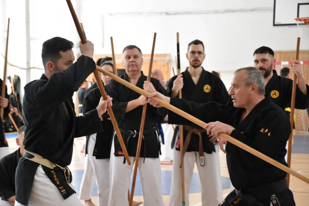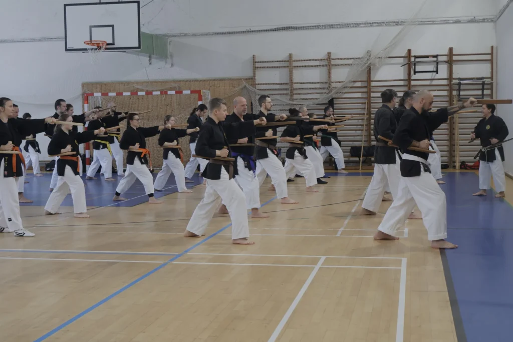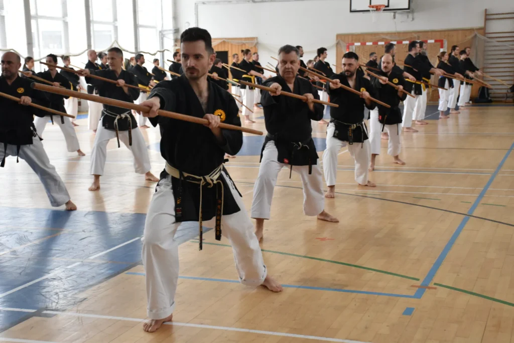A tak tomu aj bolo! Cez víkend na seminári prišlo takmer 70 účastníkov z Belgicka, Českej republiky, Francúzska, Maďarska, Nemecka, Poľska a samozrejme Slovenska. Sobotný spoločný tréning sa už tradične začal s Bo. Prešli sa základy a potom sa rozdelili skupiny a asistujúci inštruktori dostali pridelené skupiny a pokyny, čo majú robiť. Boli nimi Sensei Jan (ČR, 6. Dan Kobudo), Sensei Nathalie (FR, 5. Dan Kobudo) a Sensei Igor (SK, 5. Dan Kobudo). Preberali sa zakladné Hojo Undo a základné, ale aj pokročilé Kata. Po dvoch hodinách tréningu nasledovala obedňajšia prestávka.